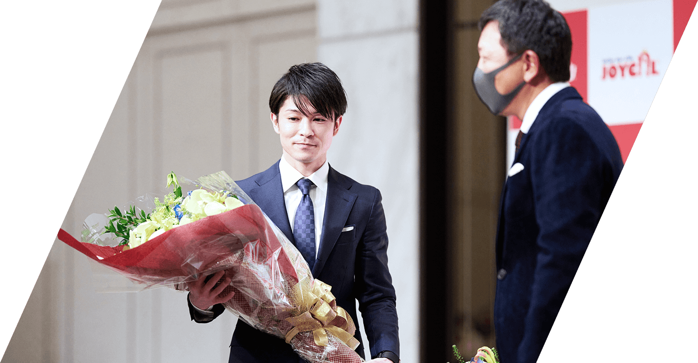 当社は2005年の創業以来、我が国のクルマ社会を支えている日本全国各地の自動車整備工場との協業で事業を進めて参りました。全国のパートナーと共に、既存の枠にとらわれない自動車販売のスタイルを提案することで新しいマーケットの創造を実現いたしました。約4年間、個人スポンサード企業の一つとして内村航平さんのアスリート活動を応援、内村航平さんには当社ジョイカルグループの発展のために「FCオーナーとの懇親」、「子供スポーツ教室の共同開催」、「当社訪問による社員交流」、「TVCMの出演」など協力をいただきました。足掛け4年に渡る交流を続けてきた中で当社は大きな学びや気付きを内村航平さんから頂くことができました。そしてこの度、内村航平さんが次の一歩を踏み出すことに対し、グループ関係者一同、万感の思いを抱いております。内村航平さんのさらなる活躍を信じ、今まで以上に支援させていただきたいと存じます。